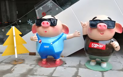 卡通豬雕塑公仔,玻璃鋼豬年卡通豬仔造型雕塑