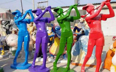 玻璃鋼人物雕塑包括古代歷史名人、抽象人物、卡通人物等。歷史人物一般制作成仿銅效果,用于校園、公園等室內外;卡通人物多為彩繪樣式,用于兒童樂園、幼兒園、商場美陳等;抽象人物一般為純色,用于室內戶外各種場合。